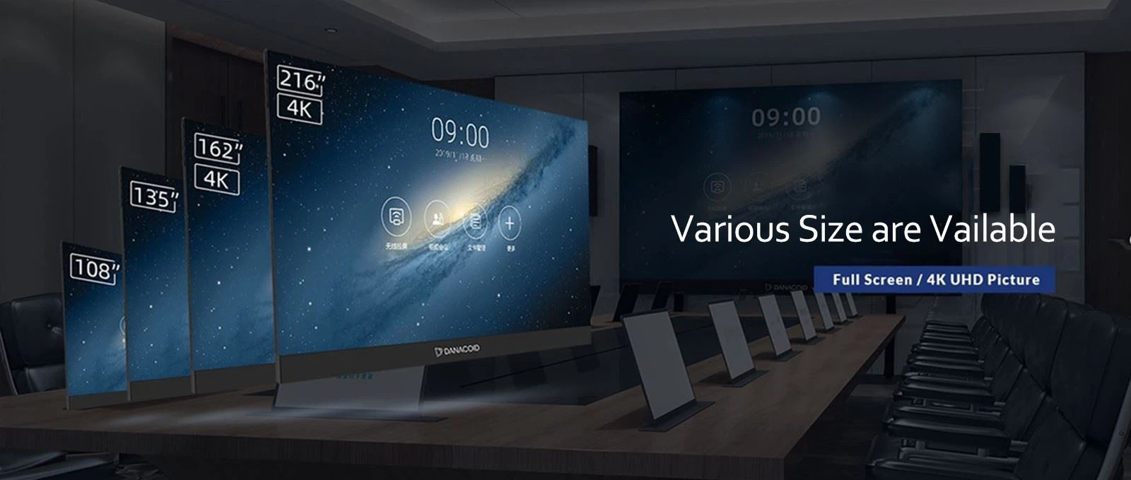 Not every meeting room has the same display needs, mainly depending on the size and use of the room. Milestrong provides all in one intelligent led screen for meeting room from 108” to 216” so you can choose the right size of screen to match your meeting room.